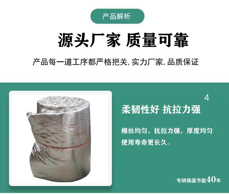耐高溫?zé)o機(jī)纖維卷毯耐溫高達(dá)1100℃,高溫下導(dǎo)熱系數(shù)極低具有優(yōu)秀的耐火性能和隔熱性能。封裝于表面的阻燃方格筋復(fù)合鋁箔提供額外的作業(yè)強(qiáng)度,防潮性能優(yōu)異。