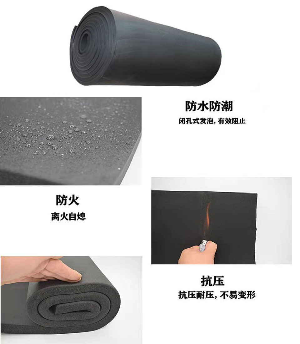 因本產(chǎn)品富柔軟性,安裝簡易方便。管道安裝,可套上后一起安裝,也可將本管材縱向切開后再用膠水粘合而成。對閥門、三通、彎頭等復(fù)雜部件,可將板材裁剪后,按不同形狀包上粘合,確保整個系統(tǒng)的嚴(yán)密性,從而保證了整個系統(tǒng)的保溫性。又因本材料外表有橡膠的光滑平整,以及它本身的優(yōu)異性能,不需另加隔氣層,防護層,減少了施工中的麻煩,也保證了外形美觀、平整。