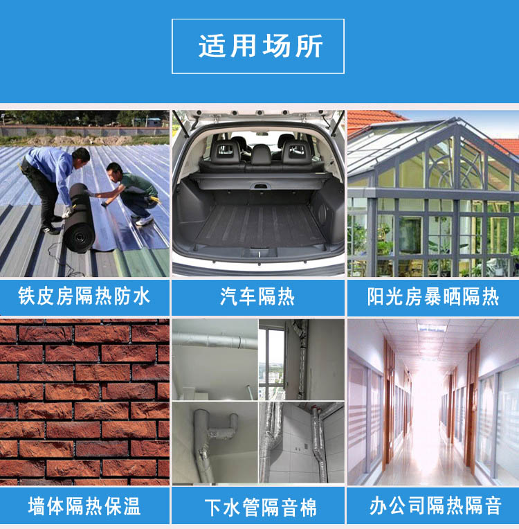 神州閉孔式橡塑材料用于建筑業(yè)、商業(yè)、工業(yè)用大罐體設(shè)備和管道的絕熱保溫,中央空調(diào)風(fēng)管的保溫,家用空調(diào)、汽車空調(diào)、鋼管連接管保溫套等。神州閉孔式材料廣泛應(yīng)用于運(yùn)動器材護(hù)套、墊片及救生潛水服。神州開孔式橡塑材料可用于墻板隔音,風(fēng)道吸音及娛樂場所的吸音裝飾,并可用于儀器、設(shè)備的抗沖、減壓作用。