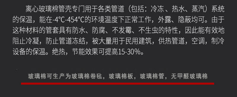 離心玻璃棉由于質地柔軟,纖維細致,不僅保溫隔熱,吸音降噪,而且施工中不刺激皮膚。離心玻璃棉卷氈是鋼結構建筑保溫吸音材料,工程造價低,施工周期短,無毒,外形美觀大方。離心玻璃棉板則適用于墻體保溫,室內隔斷,火車車廂。空調板適用于各種不同規格空調風管及其他風管的保溫與隔音,表面可粘貼鋁箔、玻璃絲布,既可保溫防潮,防輻射,還有一定裝飾性,具有保溫效果好,阻燃,抗震吸音等優異性能,施工方便,節能顯著。因此,離心玻璃棉是目前公認的性能優越的保溫隔熱吸音材料
